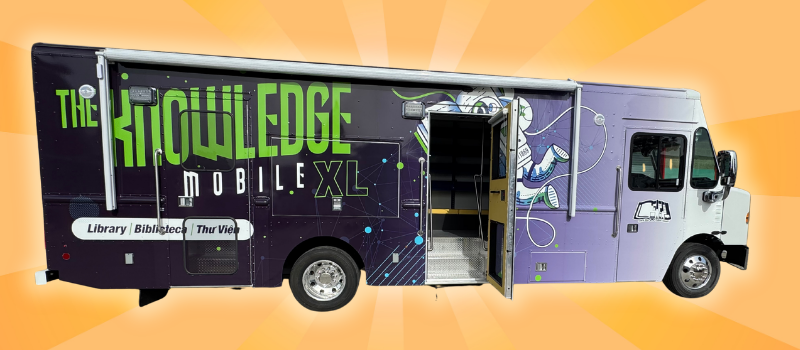 Be on the lookout for the Know-Mo XL, a new, larger bookmobile with enhanced technology, including an exterior LCD screen and a sound system. With more space for books and technology, and the ability to welcome patrons on board, this upgraded mobile library will help us reach more neighborhoods, schools, parks, and community events.